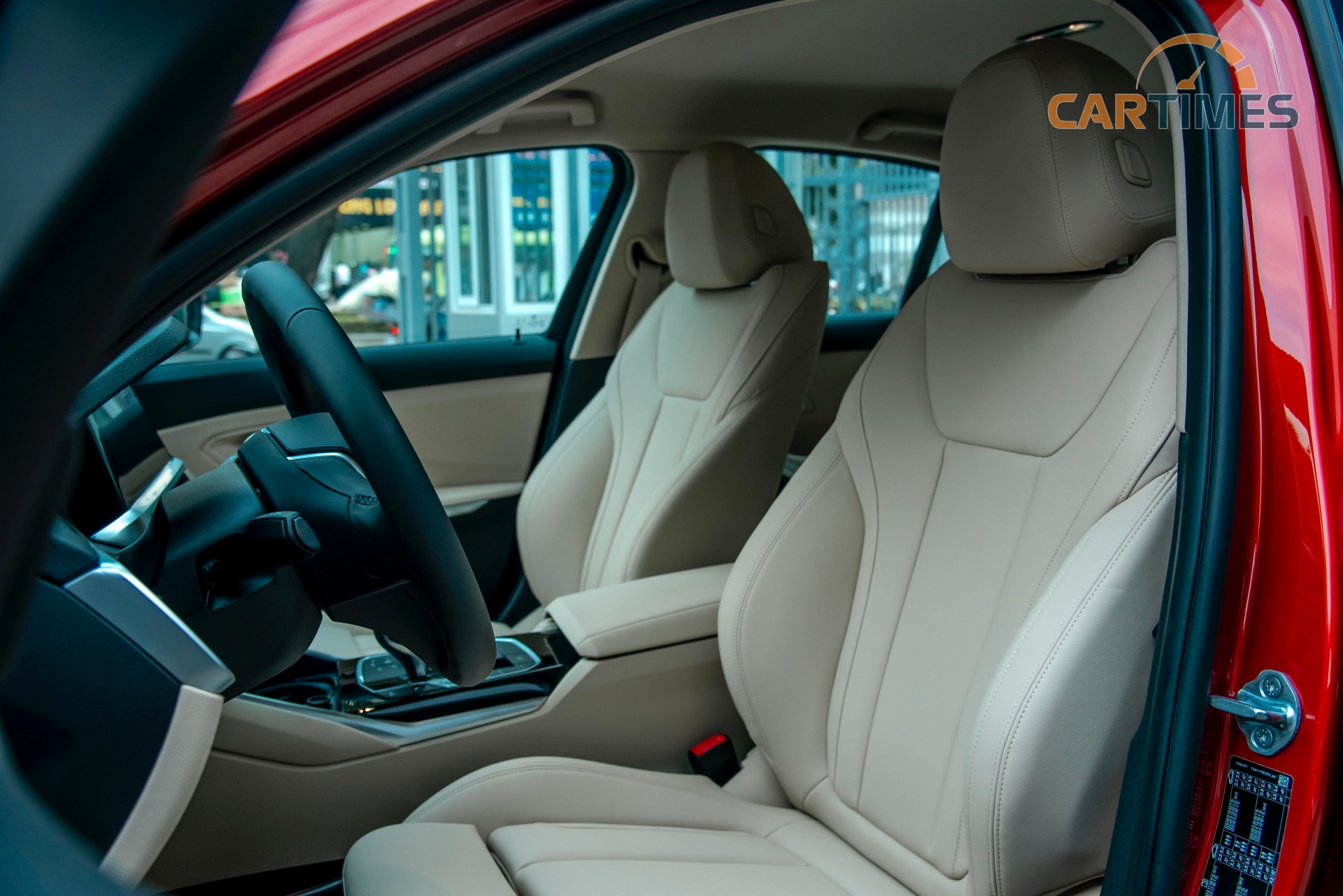 Mặt táp lô được nhựa nhám đi kèm ốp gỗ màu đen piano. Nội thất xe bọc da Sensatec màu kem, hàng ghế trước có chức năng chỉnh điện, riêng ghế lái có thêm chức năng nhớ vị trí.