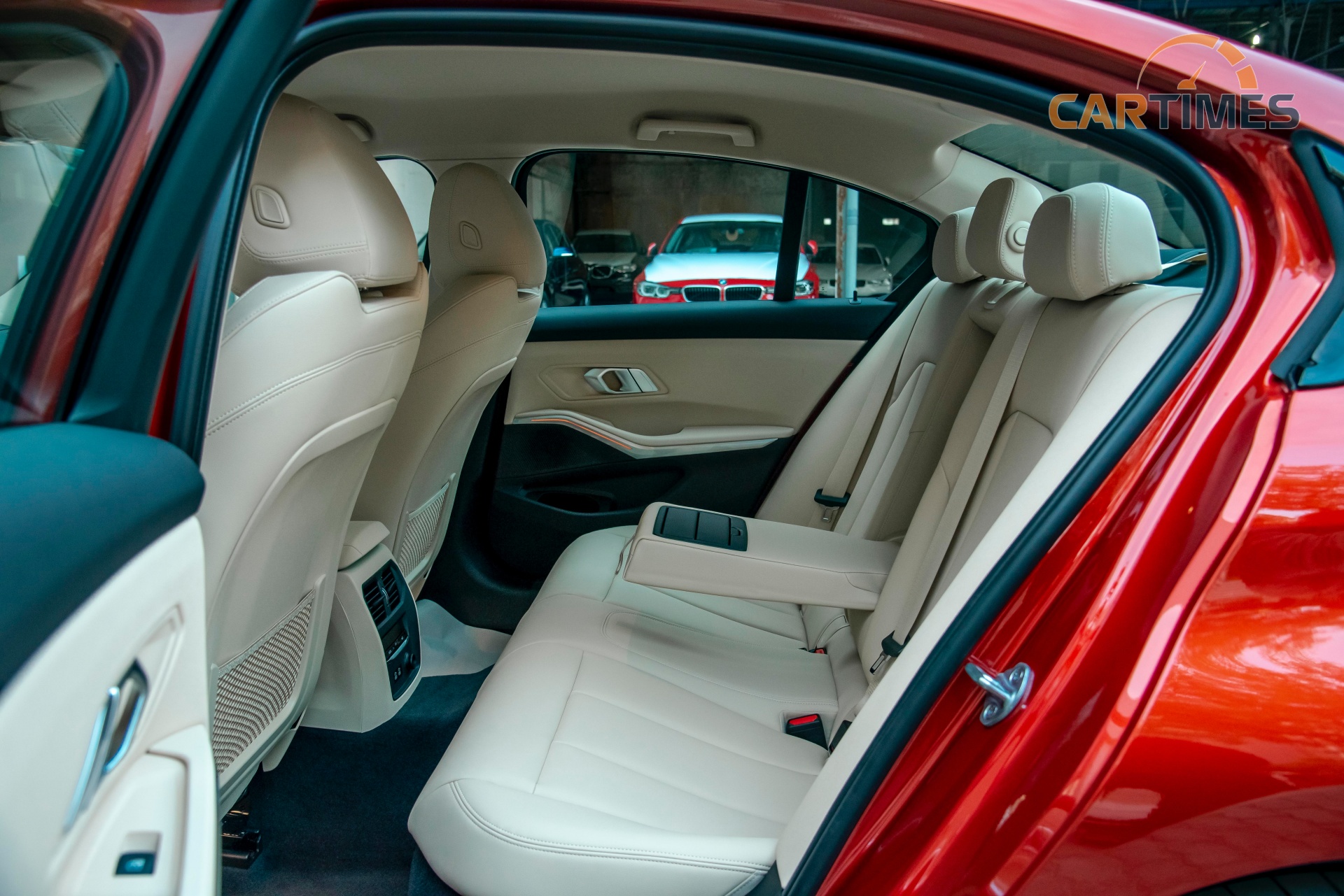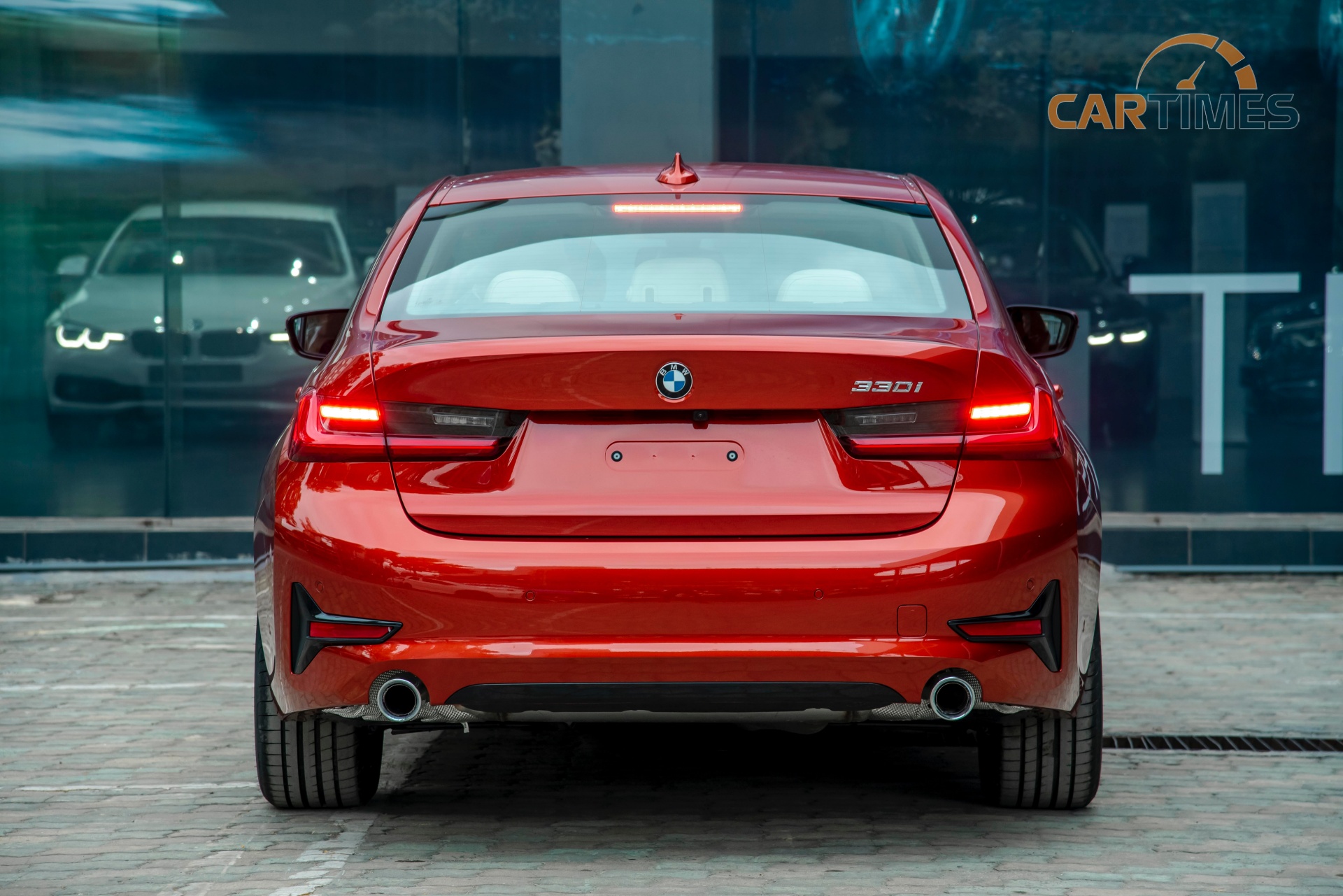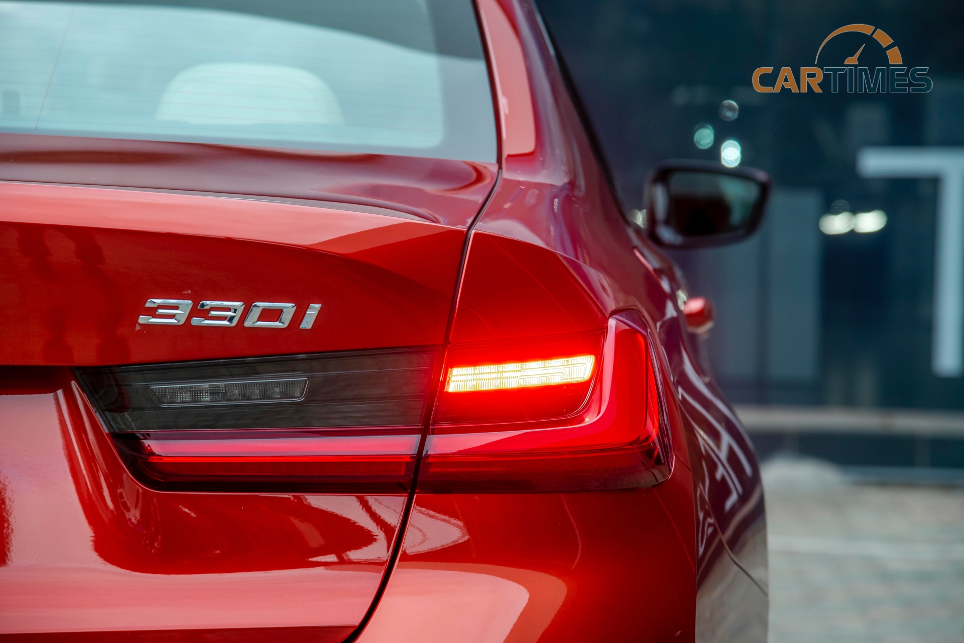 Ở phía thân xe, BMW 330i Sport Line chỉ trang bị la zăng 17 inch 5 chấu kép, trong khi phiên bản M Sport là la zăng 18 inch đa chấu. Xe vẫn trang bị gương chiếu hậu chỉnh gập điện tích hợp chống chói tự động và đèn báo rẽ. Ở phía đuôi xe vẫn trang bị ống xả kép, đèn hậu thiết kế mới kiểu chữ L, nhưng 2 đèn phản quang đặt ở vị trí khác so với phiên bản M Sport.