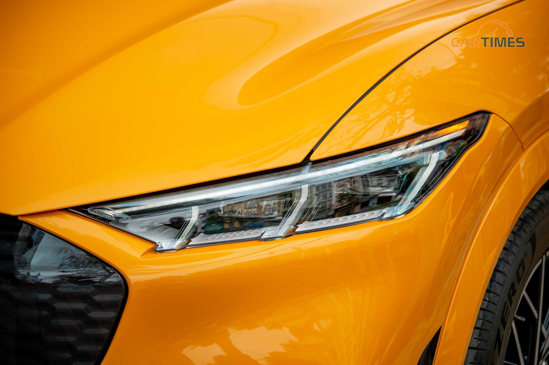Là một mẫu xe điện, phần đầu xe gây ấn tượng với đèn hậu full LED với 3 dải, xe không có lưới tản nhiệt nhưng bù lại mặt ca-lăng đa giác kiểu 3D với logo "ngựa hoang" có đèn viền.